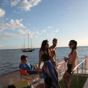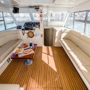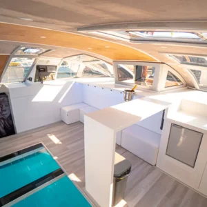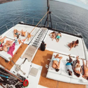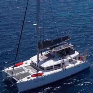 Questo catamarano si distingue per essere uno dei più ecologici della sua generazione. Rilassatevi sul solarium e godetevi il mare.