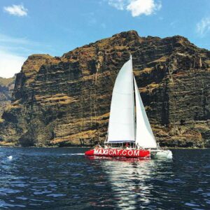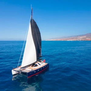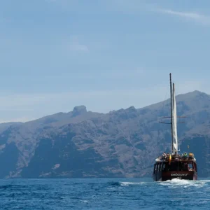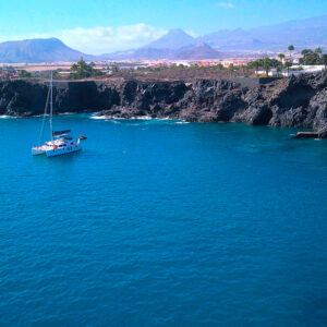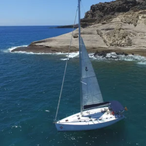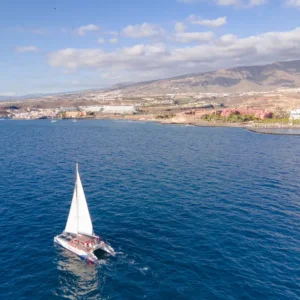 Navigate lungo la costa meridionale di Tenerife a bordo della White Sea, una barca a vela sostenibile.