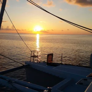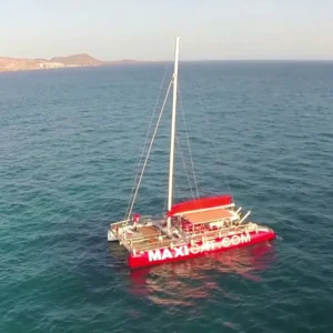 Questo catamarano a vela ha una capacità di 12 persone, ideale per navigare le acque in modo intimo.