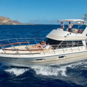 Navigate lungo la costa sud-occidentale di Tenerife a bordo di questo yacht privato e intraprendete un viaggio speciale con il vostro partner, la famiglia o gli amici.