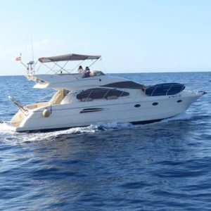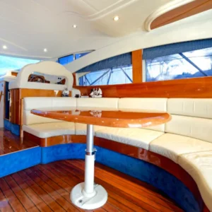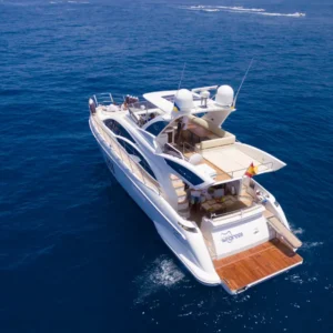 Questo yacht, un Azimut 60 Flybrigde, è lungo 18,36 metri e ha una capacità massima di 12 passeggeri.