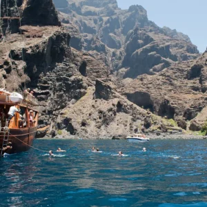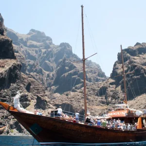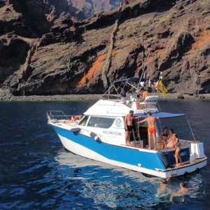 Barca tipo lancia con cui navigherai lungo la costa di Masca e Los Gigantes.