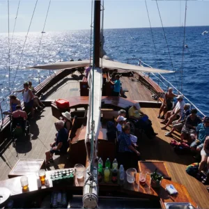 Si tratta di un’autentica barca a vela orientale, costruita in legno di teak, nella quale navigherai lungo la costa sud di Tenerife.